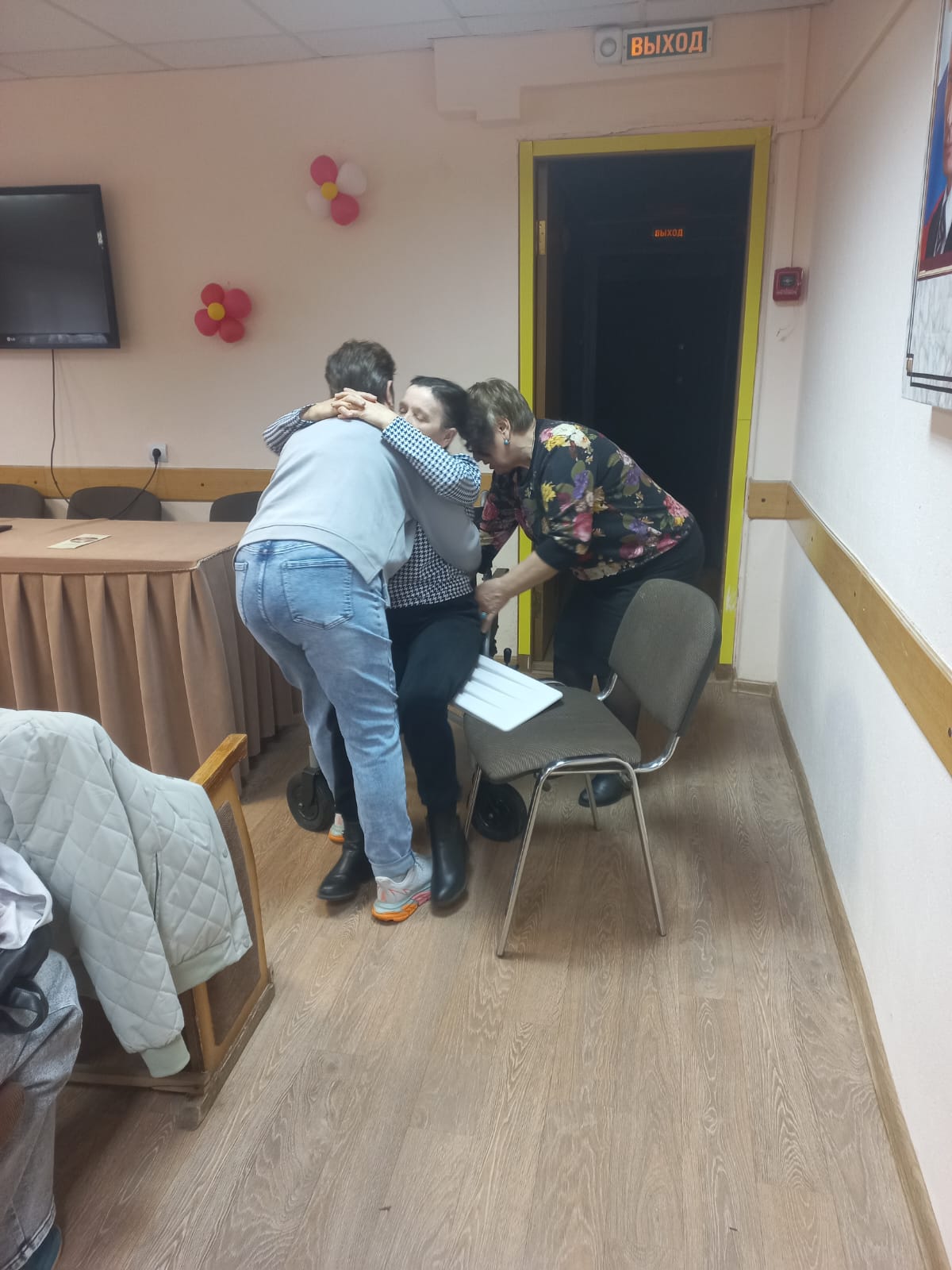 После просмотра видеоматериала, прошло практическое занятие, на котором каждый из присутствующих продемонстрировал как правильно пересадить своего подопечного в инвалидную коляску.