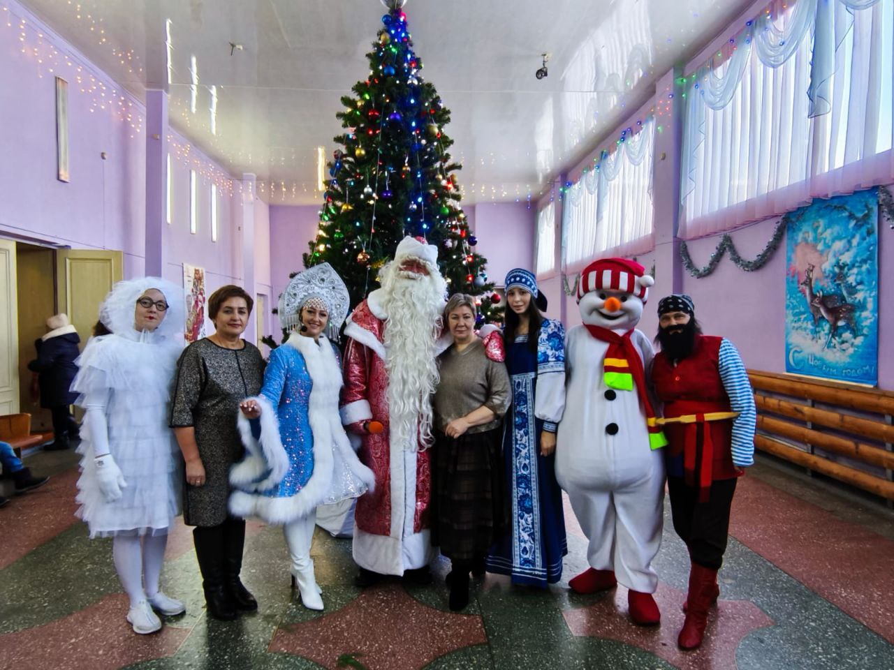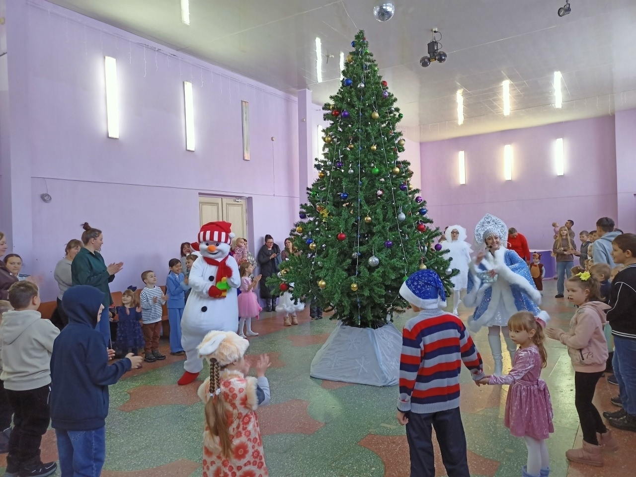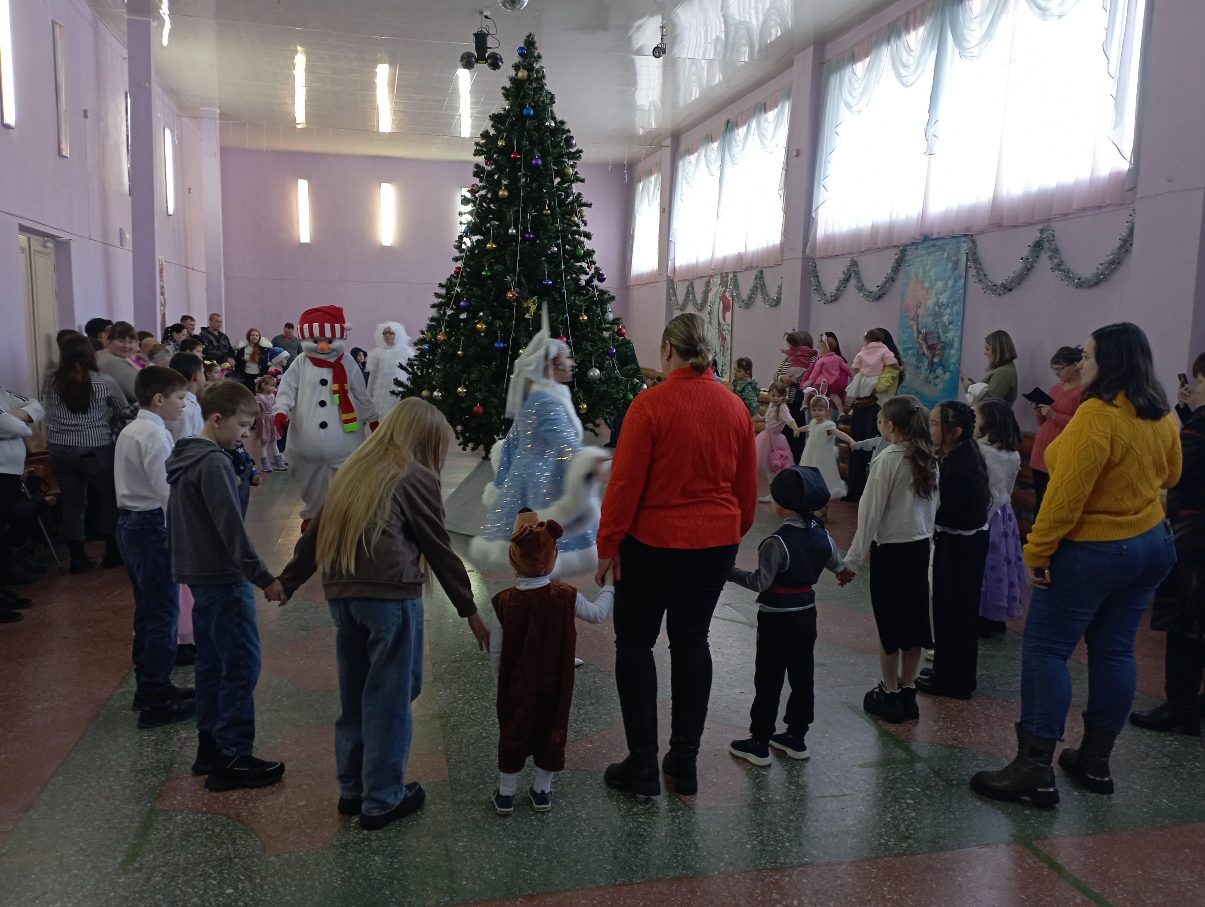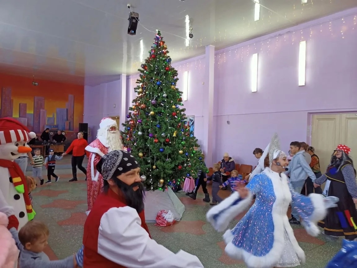 Работники Центра культуры и досуга организовали для ребятишек два Новогодних представления: в 10 часов специалисты центра социального обслуживания населения пригласили детей из многодетных семей; семей одиноких матерей, детей-инвалидов, детей, оставшиеся без попечения родителей. В 12 часов в гости к Деду Морозу и Снегурочке пришли ребятишки, чьи отцы находятся в зоне специальной военной операции.